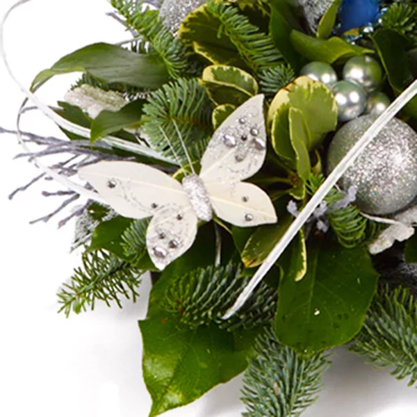 Небольшая милая композиция с еловыми веточками и нежной бабочкой.