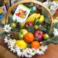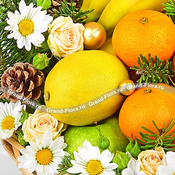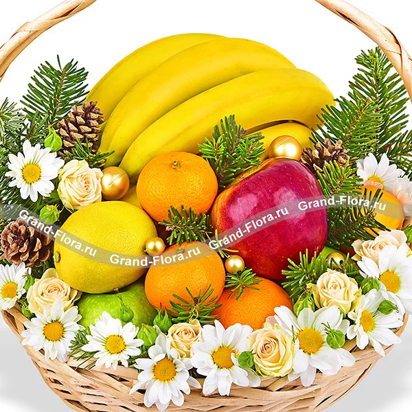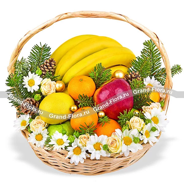 Фруктовый год - корзина с фруктами и новогодним декором